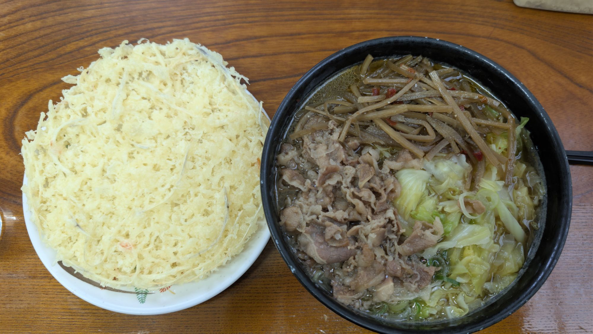 今年のはじめのうどんは「麺許皆伝」の「肉きんぴらうどん大に天ぷらトッピング」今年の目標は(大盛り)を頼まない!
