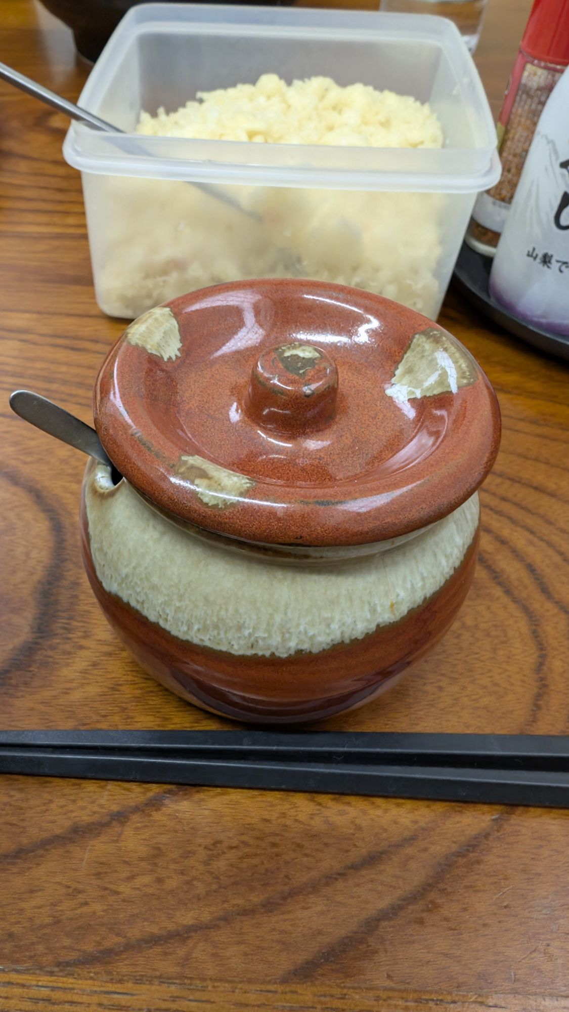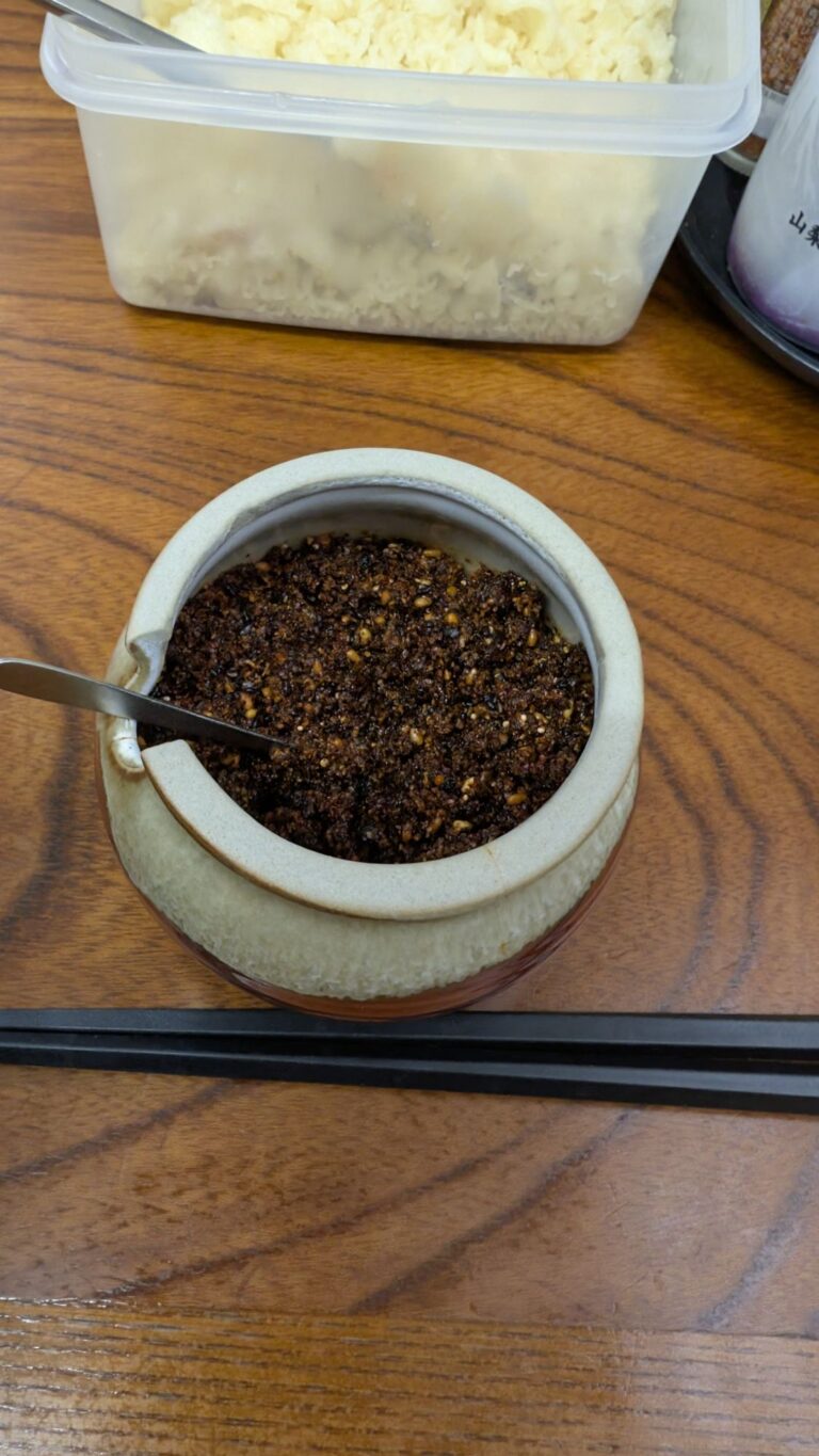うどんに薬味を入れるんですがこれも独特で各お店でそれぞれの薬味があります。「スリダネ」と言い、七味、山椒、胡麻、辣油、等をすり合わせてうどんにぶち込みます。